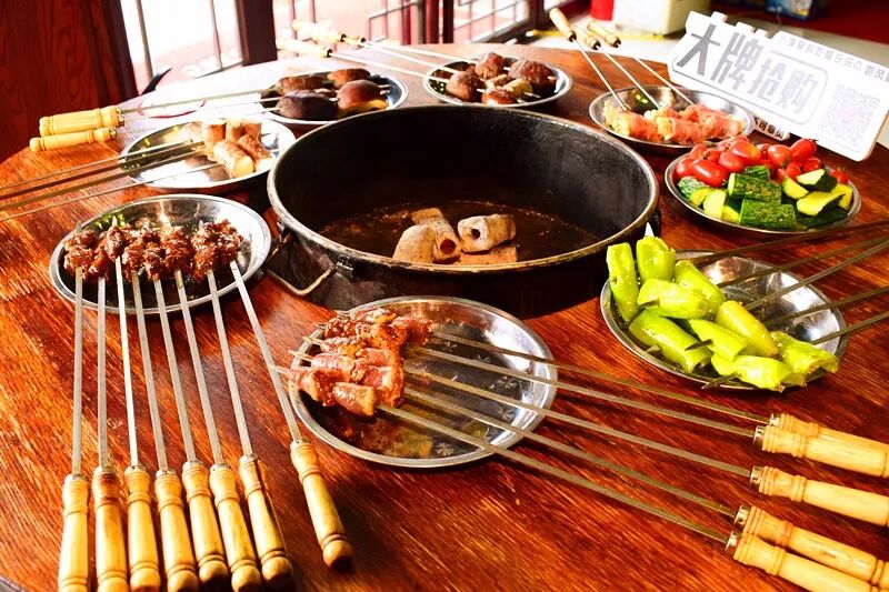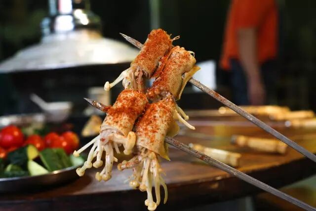 店家将食材腌好,食客们自己现烤