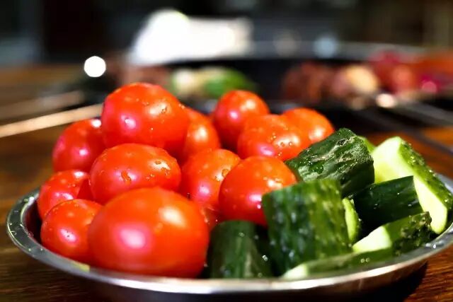 吃完肉,再来点黄瓜和圣女果,解解腻,继续吃。