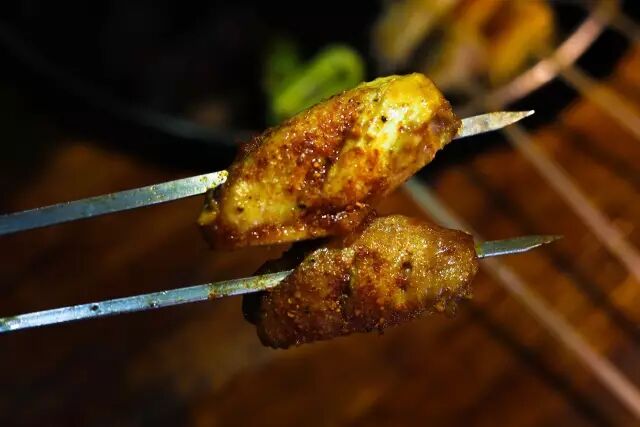 粗盐、孜然,辣椒……香料的颗粒粒粒分明的裹在肉上,大块大块的肉纹理分明,肥瘦相间,经过腌制,香味已然浸透,用不锈钢金属签子,烤出来的肉香和口感才是对的,才会有外焦里嫩的效果!肉是腌制好的,很入味,适合懒癌的你们~