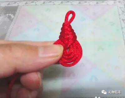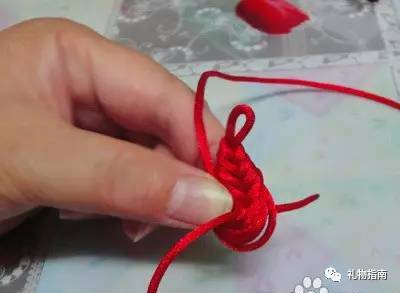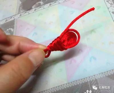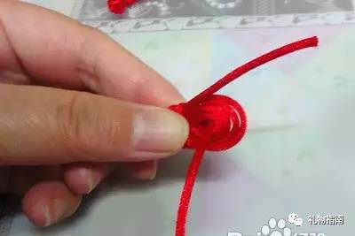 在我们做到第五次的时候,我们要将绳穿进中心的孔内