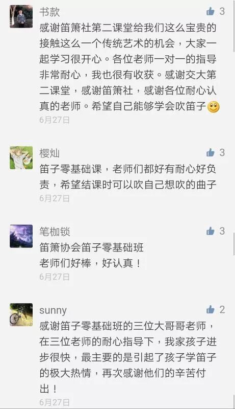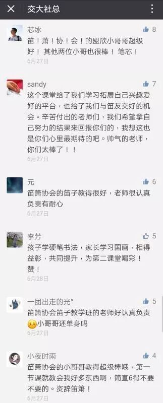2017夏季教学班,学员们的好评“霸屏”社团总会第二课堂留言区: