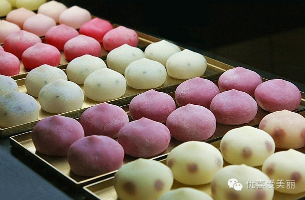 做法类似,但是里面加的是樱花,还有红豆沙。一般是粉红色的。