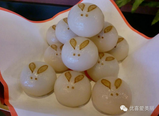 月見団子是秋天赏月的时候看的,一般是白色,也会做成呆萌的小兔纸: