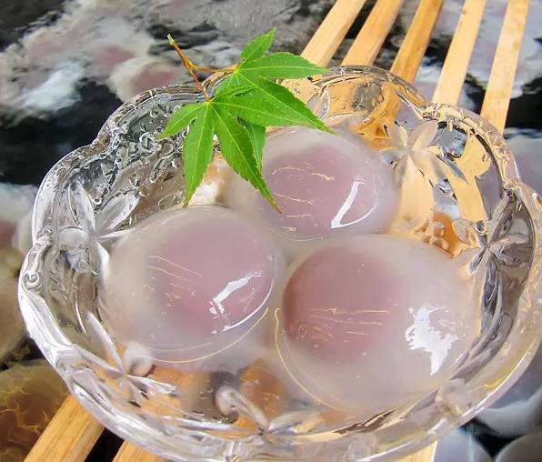 又是一种新的馒头,主要以葛粉与砂糖制成。每逢夏天,日本人会给葛馒头包上樱树叶,葛馒头本身颇具透明感,再加上树叶的装饰,让人备感清凉。葛草的根部正是中药葛根,用葛粉作为和果子的材料,自然也有助于解肌退热、生津止渴。