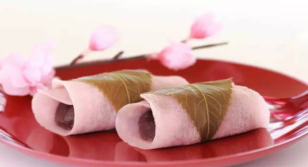 平锅中放入以砂糖和小麦粉和好的面,轻轻煎制成薄饼,再在其中加入红豆馅,最后再用樱树叶包裹,这就是最早出现于日本江户时代的樱饼。制作樱饼的小麦粉,大都以关西道明寺出产的道明寺米磨成。