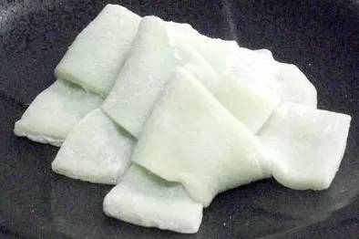 白玉粉与小麦粉溶入水中,加热并放入白砂糖与淀粉,凝固之后便成了和果子“求肥”。求肥最大的特点是弹力十足,顺滑可口,恰如牛皮一样。所以最早,这份食物的名字就叫作“牛皮”。但由于古时的日本人忌肉,“牛皮”也一并忌讳掉了,最终定名为与“牛皮”日语发音相近的“求肥”。