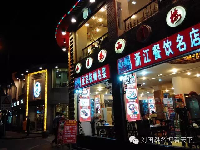 从鼓楼美食街回宾馆的路上,我一不小心就走到了另一条杭城著名的美食街---高银街。在这条美食街上,散布着川、鲁、闽、粤、浙以及素菜、海鲜、快餐等各种菜系和风味餐馆几十家,有很多是老字号的分店,比如知味观、王润兴、功德林。不过因为比较晚了,所以还在营业的店不多。