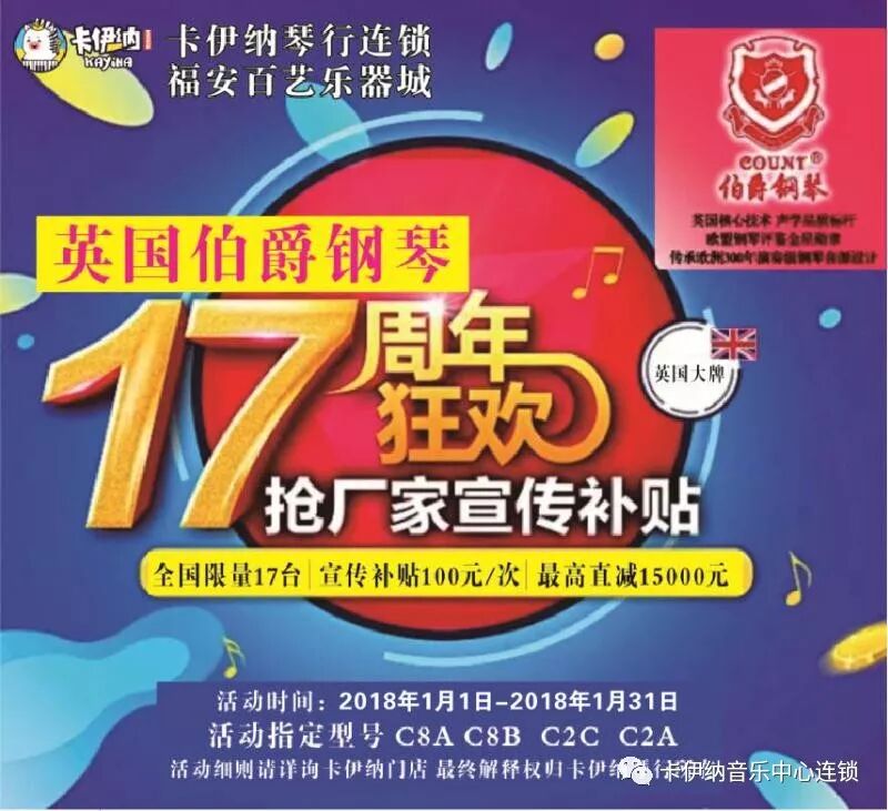 英国伯爵钢琴17周年狂欢,顶级世界名琴直降15000元。