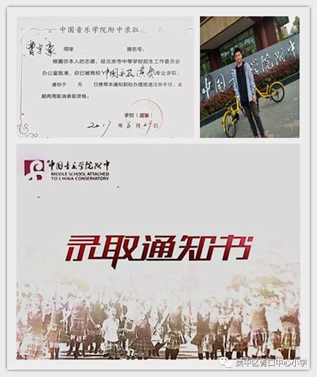 在家校共同携手努力,各位老师、专家的鼎力支持指导下,曹宇豪同学进京备考,家长放弃工作全力做好他的坚实后盾,张键老师也从乐理知识、器乐技能系统化的做一些指导,付出许多辛劳,宇豪同学最终如愿以偿获取了中国音乐学院附中的入取通知书。