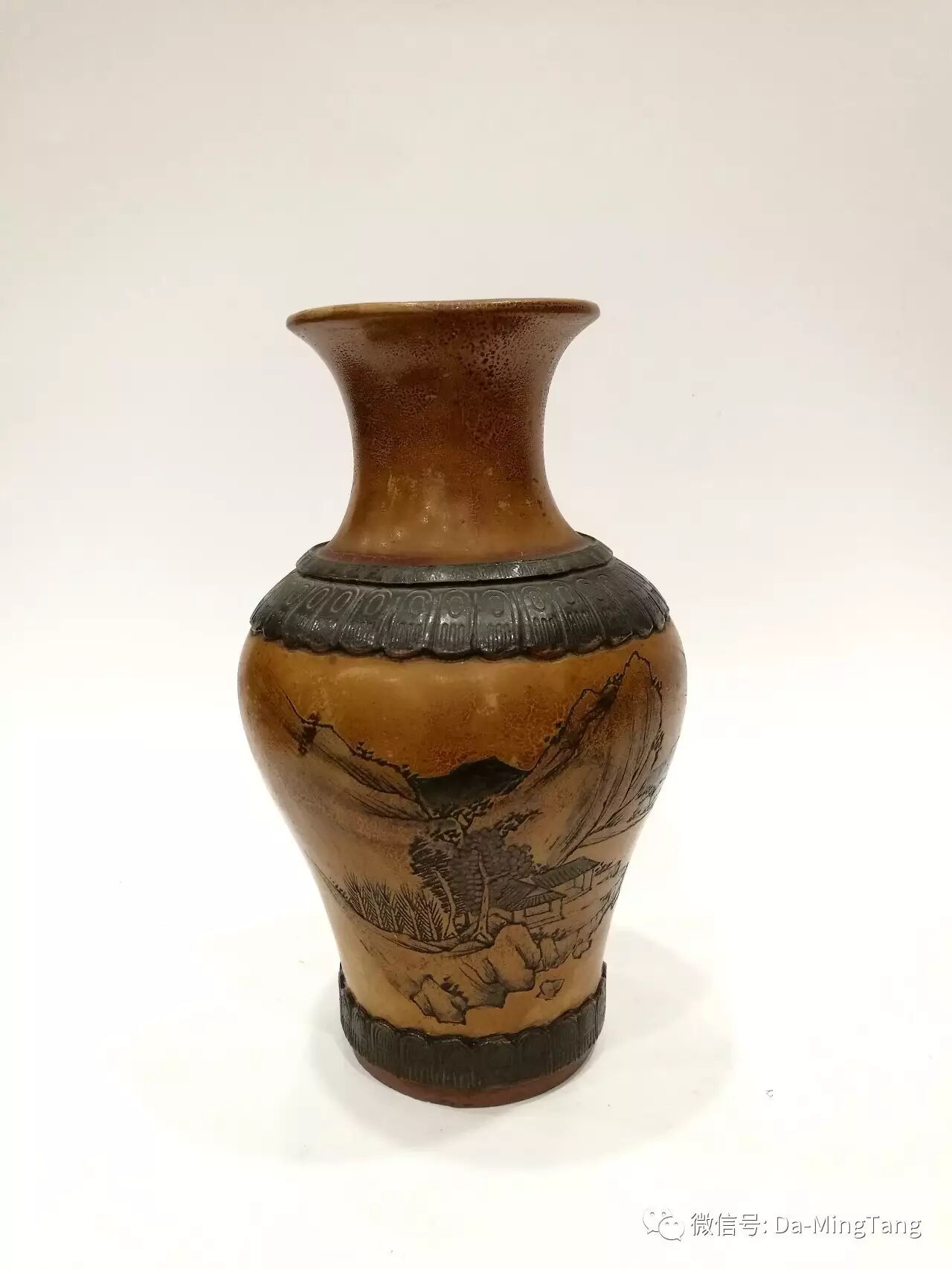 | 389 | 刻花山水紫砂瓶 尺寸:H26.5cm 交流价:1500 |