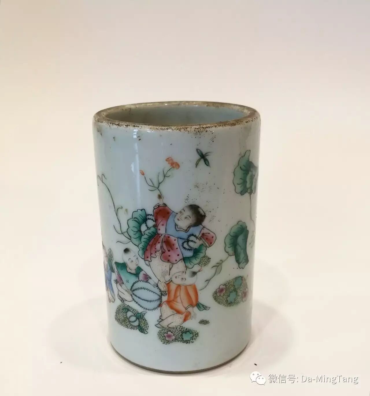 | 360 | “同治年制款”粉彩婴戏图笔筒 尺寸:H12cm 交流价:400 |