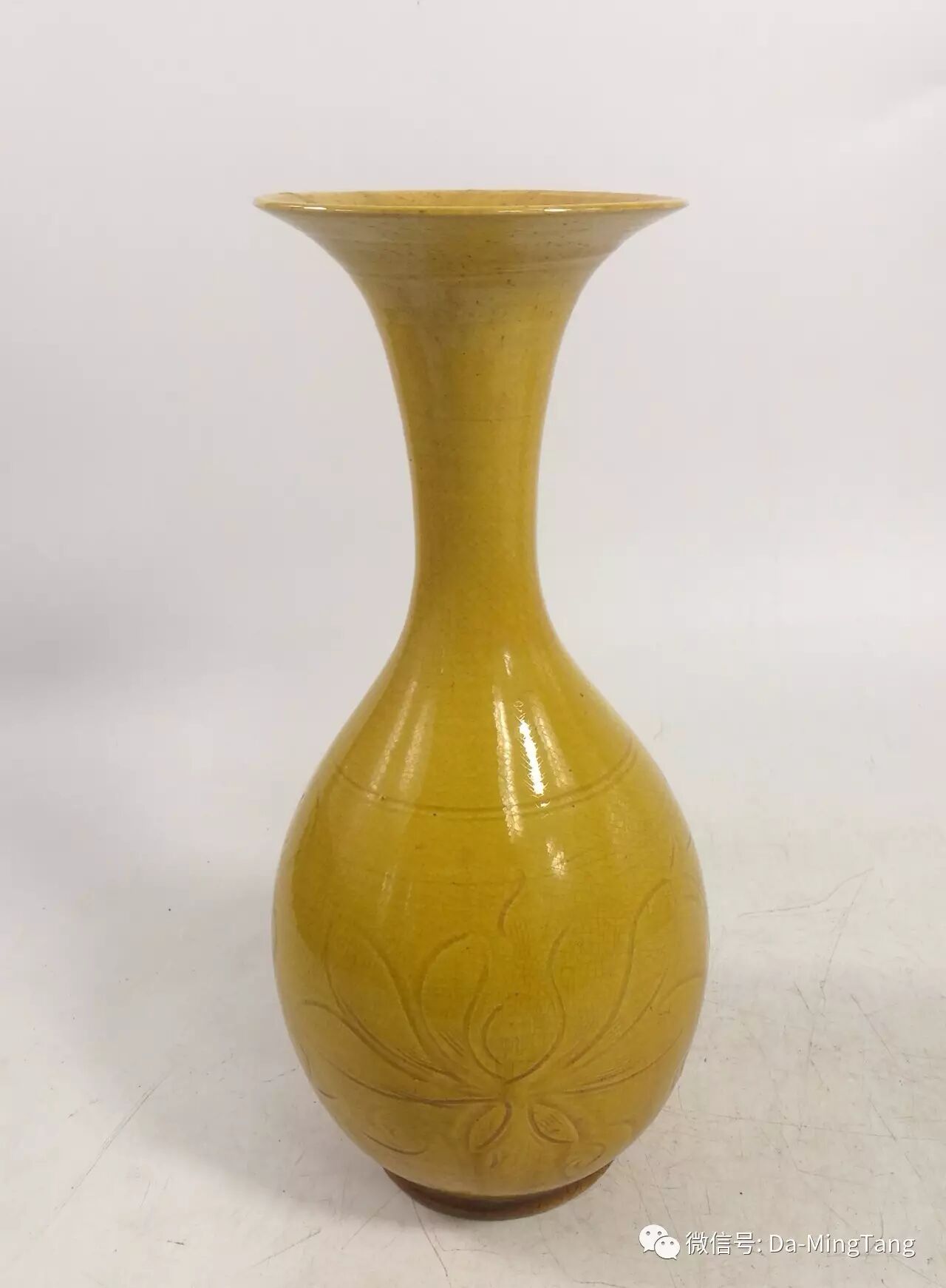| 382 | 清黄釉刻花玉壶春瓶(有修) 尺寸:H27cm 交流价:500 |