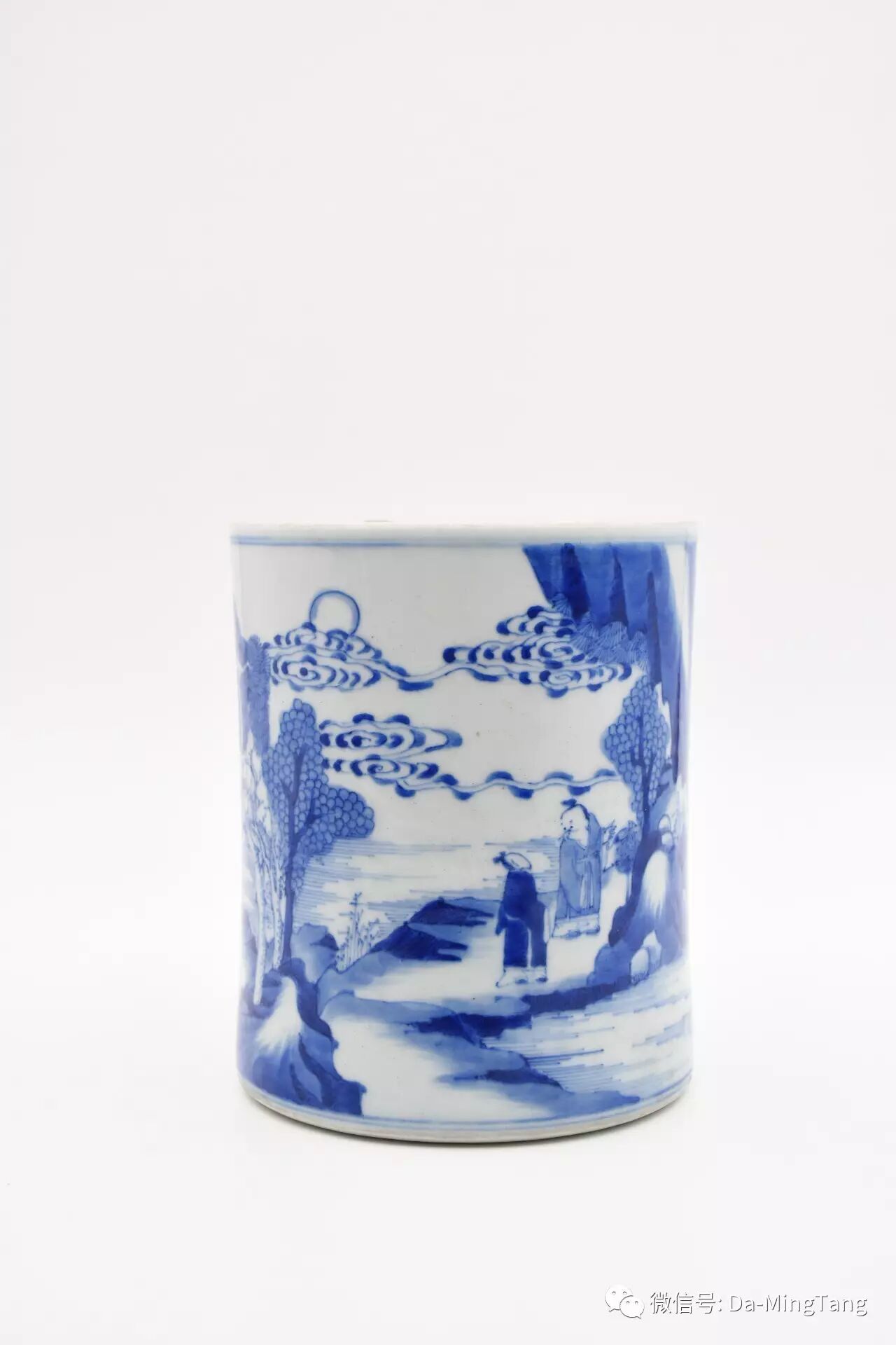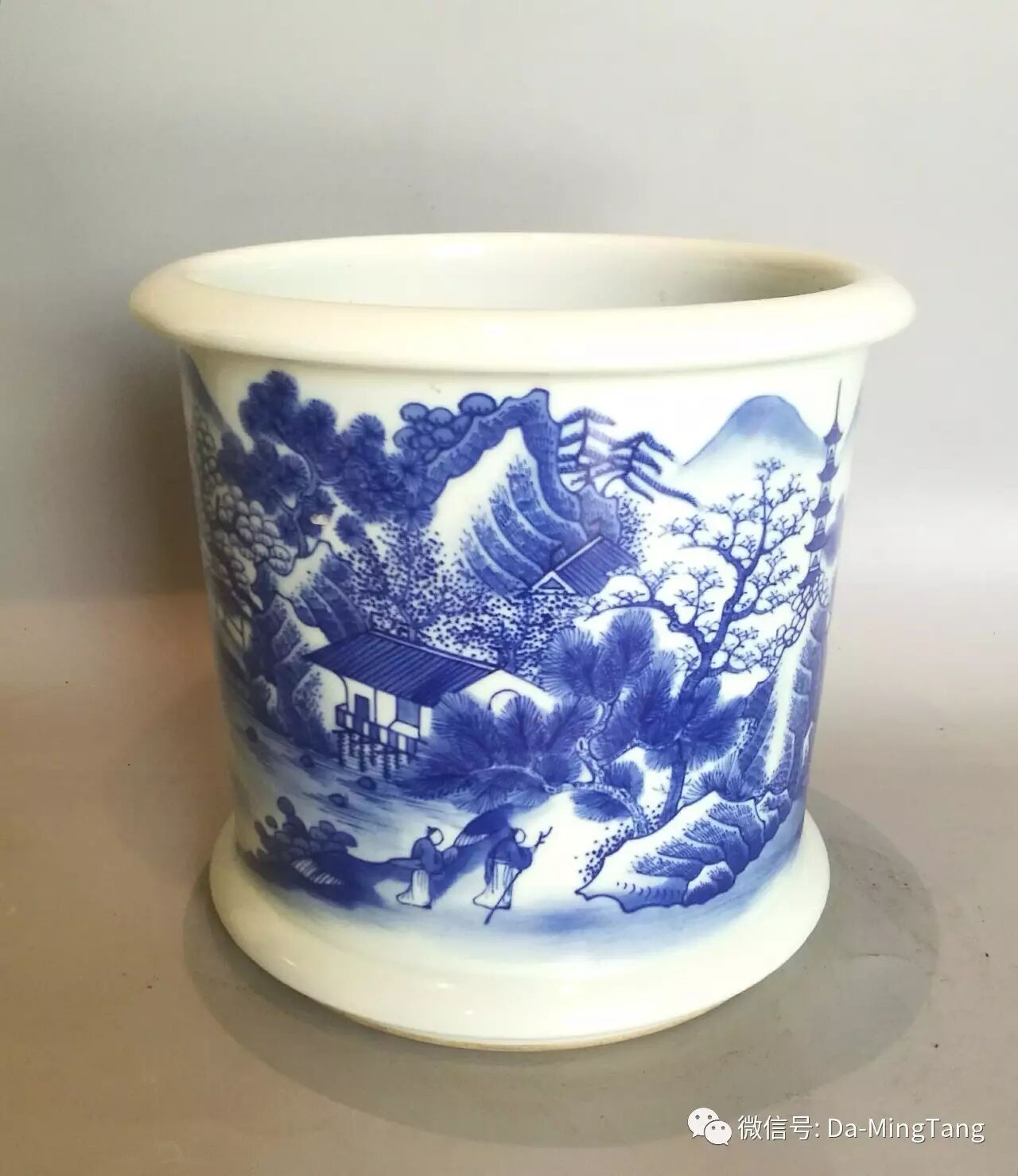 | 354 | “大清乾隆年制”青花山水人物笔筒 尺寸:H19cm 交流价:400 |