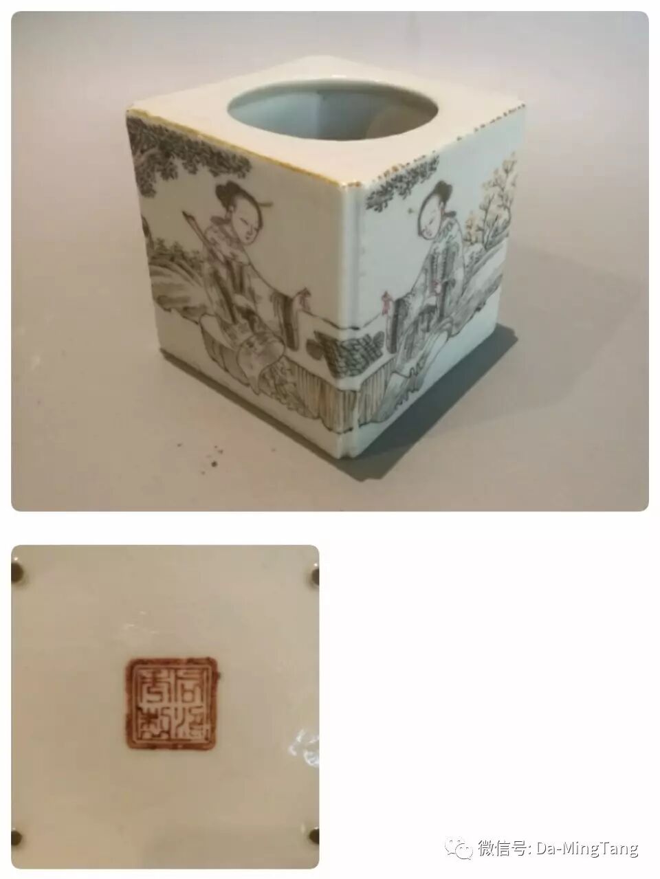 | 334 | 浅降彩人物四方水丞 尺寸:H16cm 交流价:2800 |