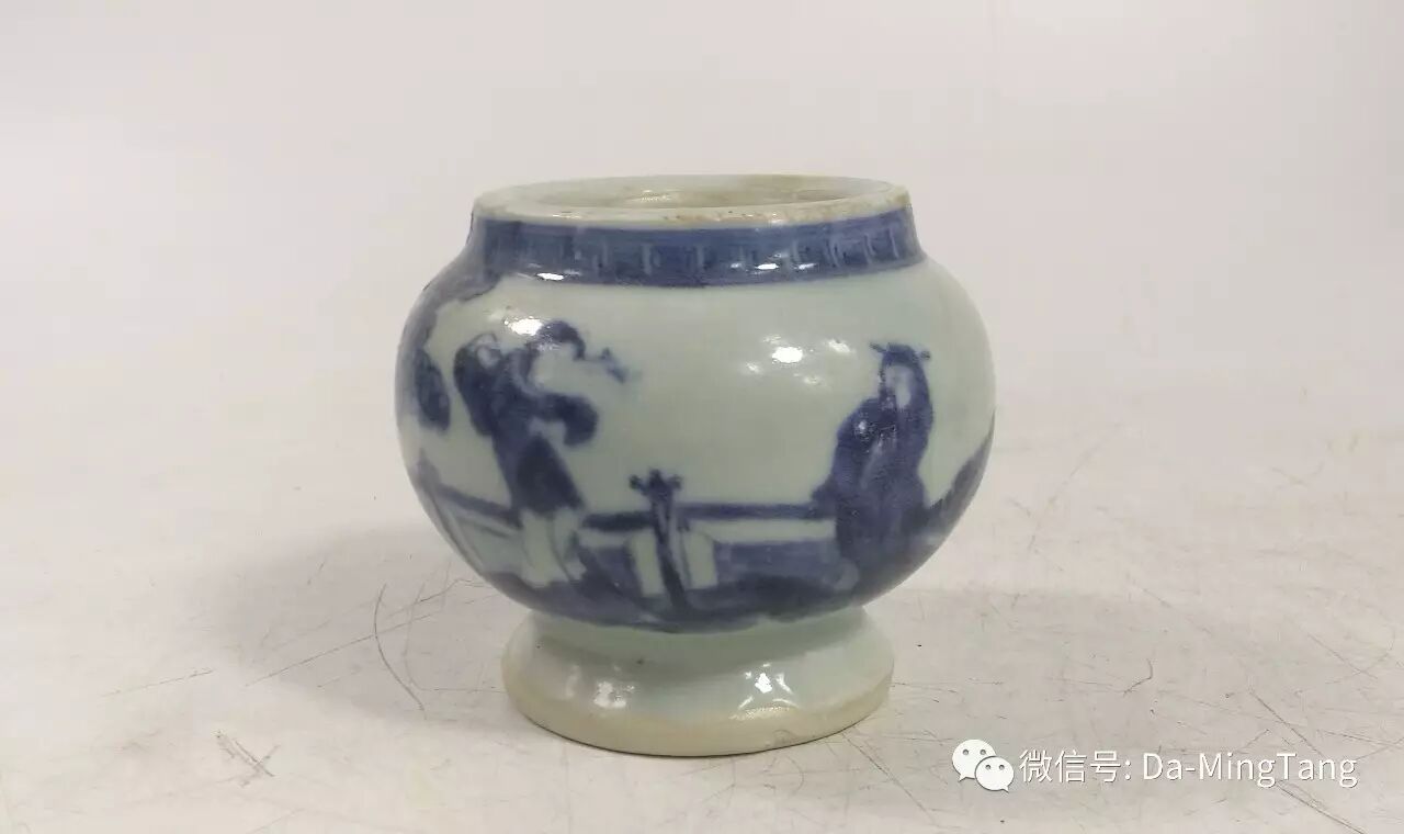 | 332 | 永乐青花人物水盂(有损) 尺寸:H9cm 交流价:1500 |