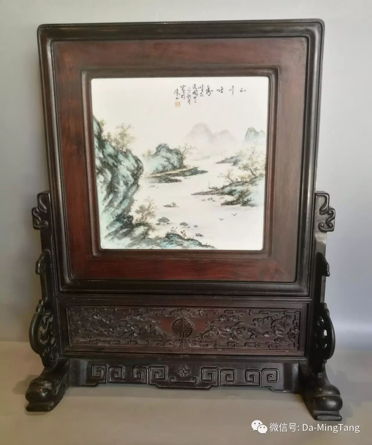| 340 | 酸枝山川秀色瓷板插屏 尺寸:H63cm 交流价:2000 |