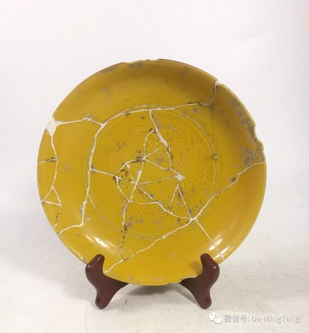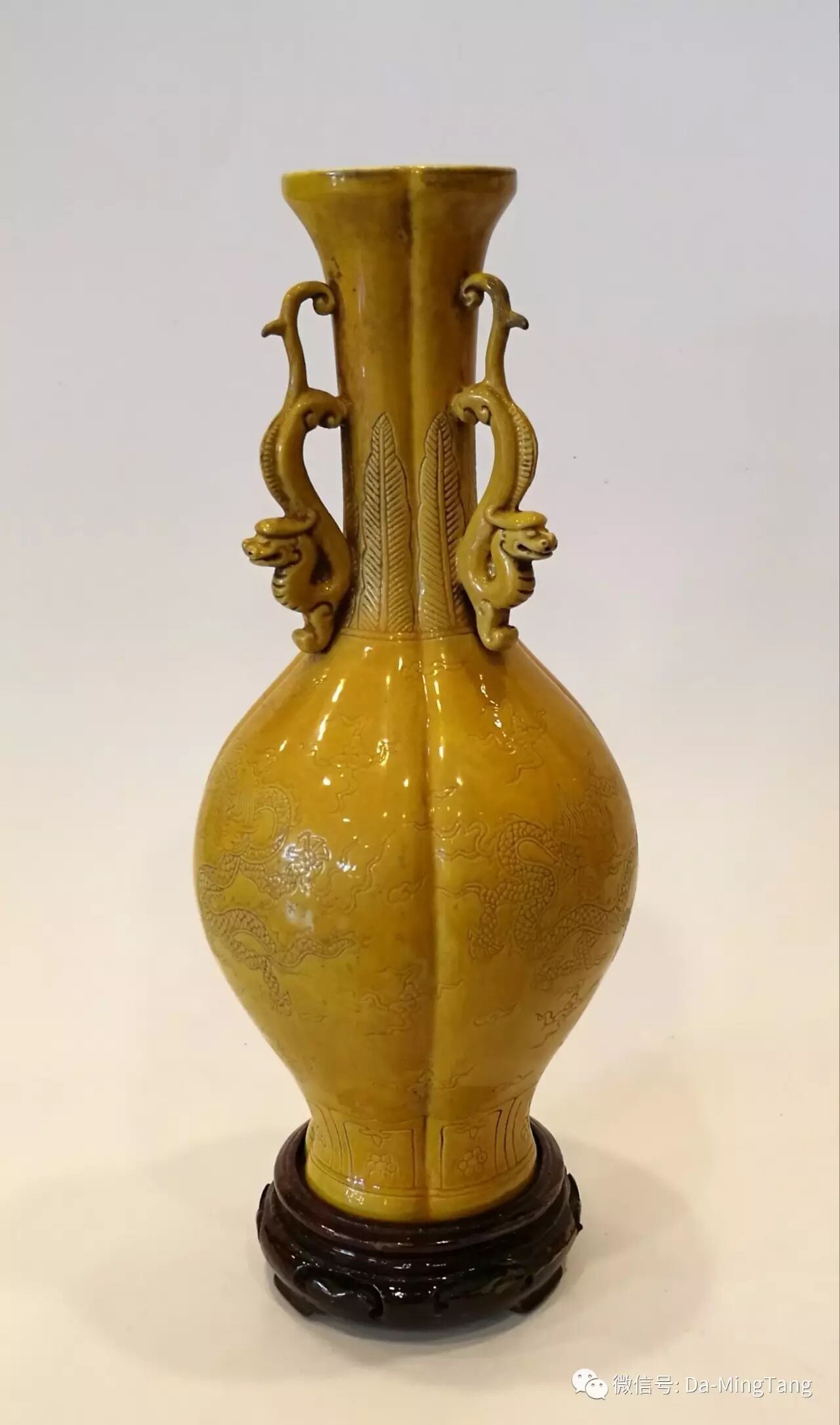 | 073 | 黄釉暗刻龙碟(正德官窑)(有修补) 尺寸:H21cm 交流价:1000 |