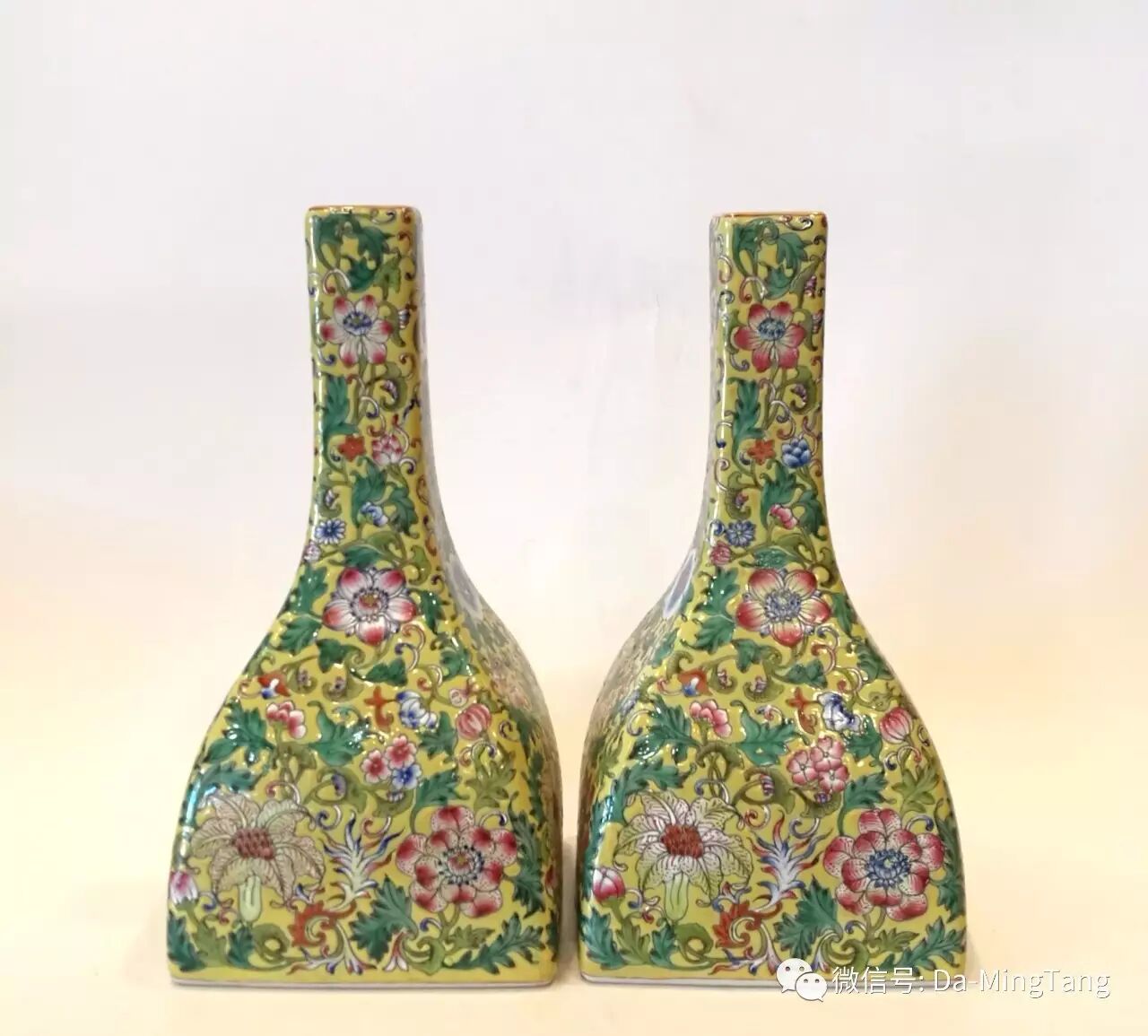 | 383 | “大清乾隆年款”黄地粉彩瓶一对 尺寸:H31cm 交流价:1500 |