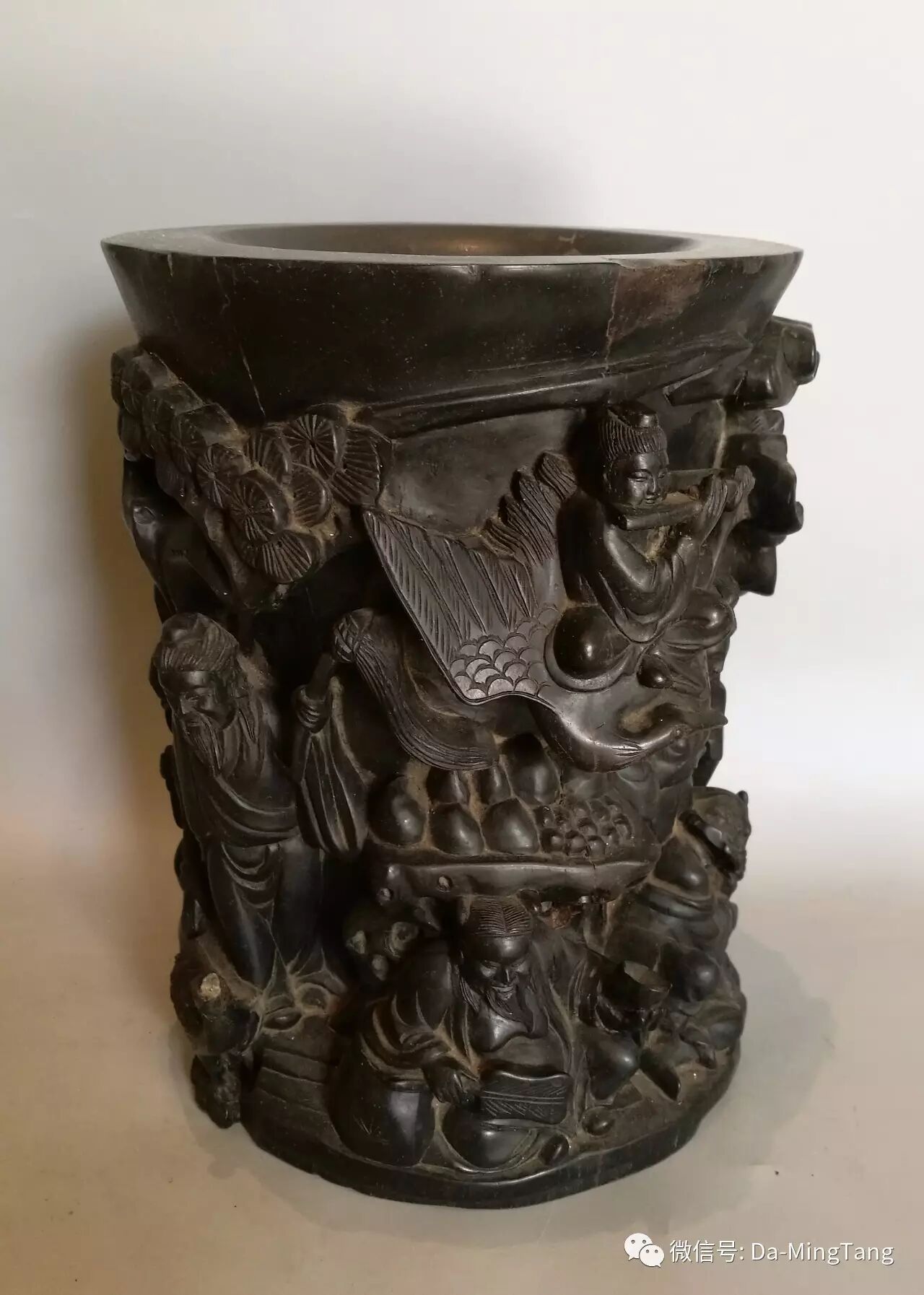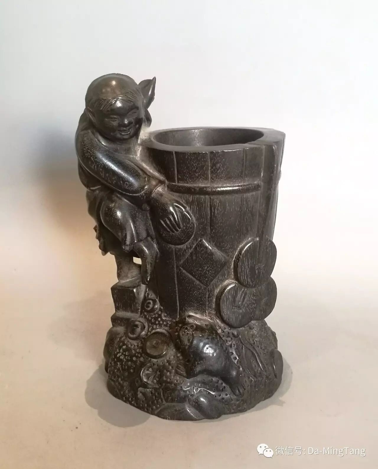 | 047 | 紫檀木雕刘海戏蟾笔筒 尺寸:H18cm 交流价:300 |