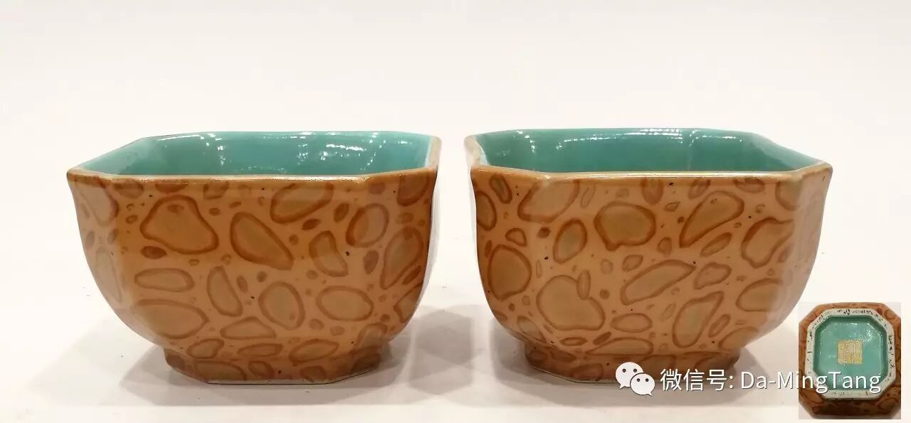 | 374 | “大清乾隆年制款”仿石釉八角杯一对 尺寸:D9.5cm 交流价:3300 |