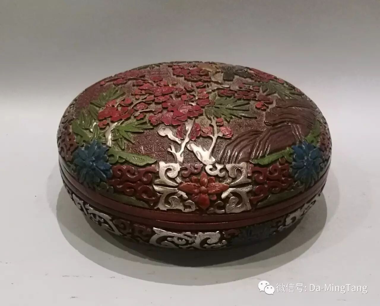 | 091 | 雕漆(剔红漆)宝盒(盖盒) 尺寸:D26cm 交流价:800 |