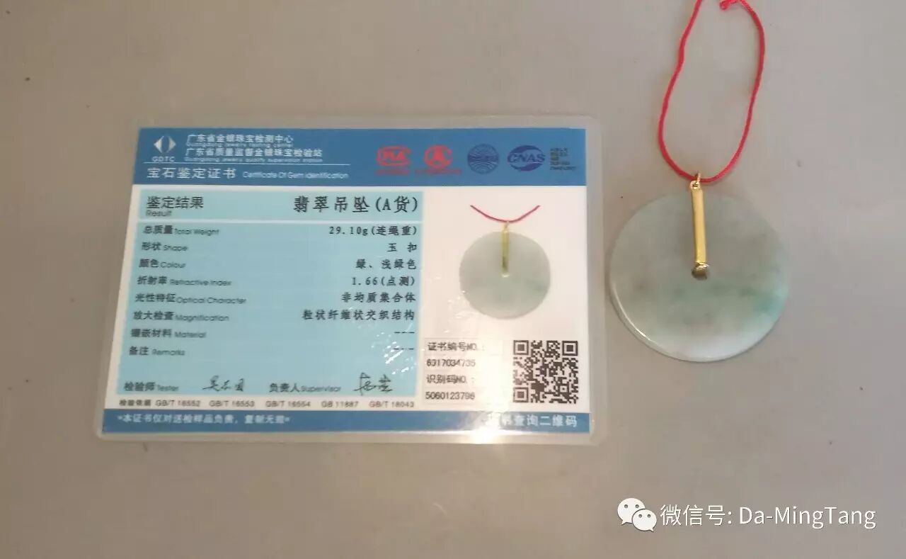 | 305 | 九九九黄金镶翡翠平安扣(有证书) 尺寸:D5cm 交流价:500 |