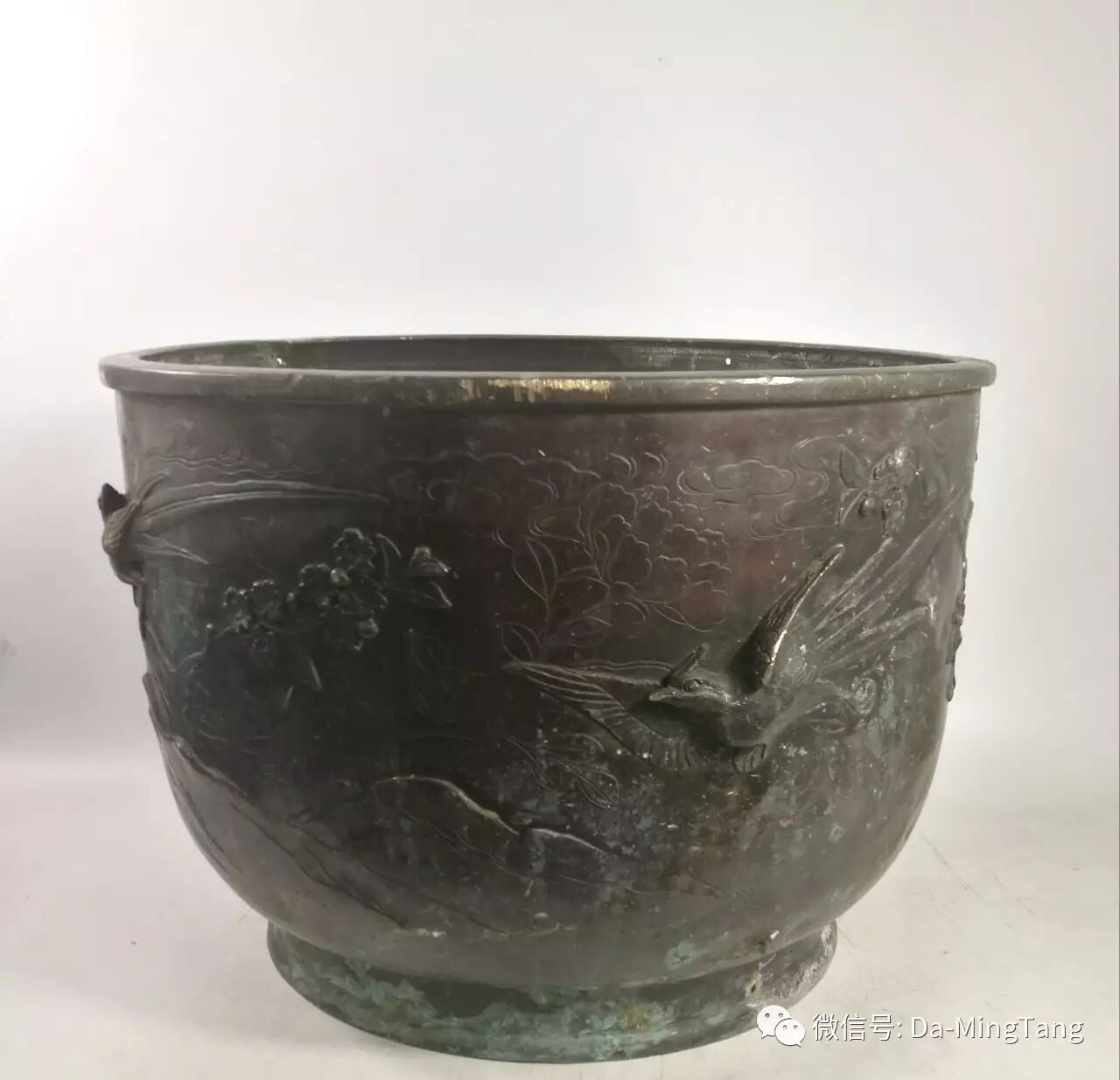 | 397 | 旧铜朝花鸟大缸 尺寸:H34cm 交流价:1000 |