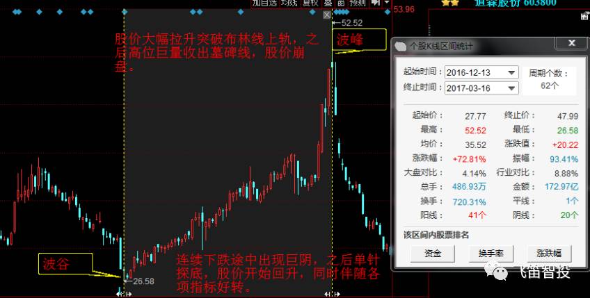 说到波段我们就必须先牢记一句话“价格围绕价值上下波动”。而波段就是价格动态运动所产生的轨迹,我们可以分为波峰、波谷、波幅以及周期。我们以道森股份2016年12月13日至2017年3月16日的日K图为例:
