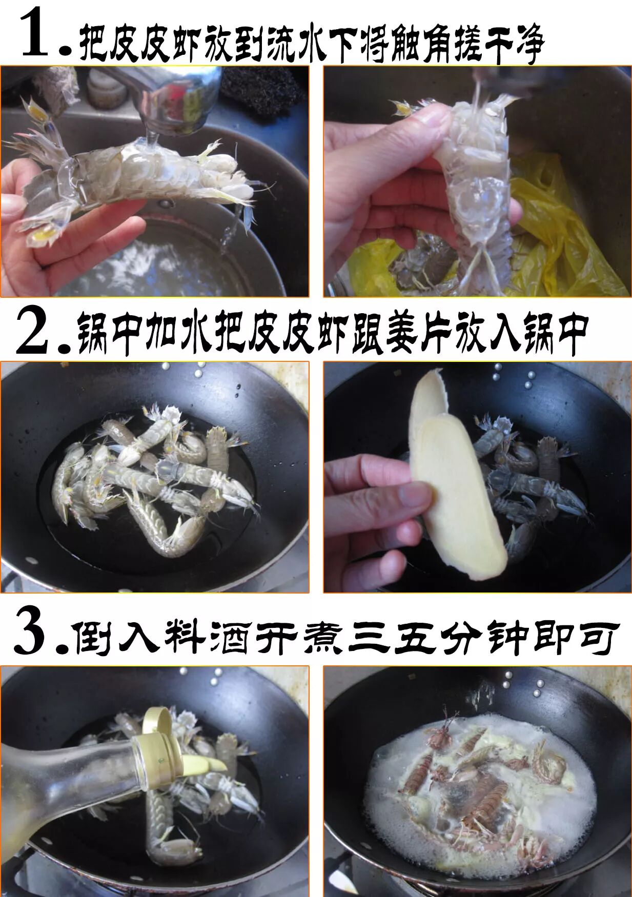 挑选皮皮虾最好能买活的,味道最鲜。挑选时,个头较小的,肚子上有个白色“王”字的是母的,煮好后肉中有黄儿。而个头儿略大,肚子上没有王字的是公的,没有黄儿,但肉厚。你根据自己的喜好挑选吧。但通常,卖家不会一斤虾里给你太多母的。鲜活的皮皮虾买回后,能保持约3个小时,因此建议你尽快食用。最好不要放入冰箱里隔夜,否则肉会慢慢变空。超过2天,冰箱里就会有臭味啦。这个做法的皮皮虾,最大程度的保持了虾的鲜嫩。冷水下锅,水开后煮3分钟,时间不要久,否则肉质就太紧了。很多人用蒸的方法,而且蒸的时间比较久,那样的话,皮皮虾的肉很容易缩小变空。