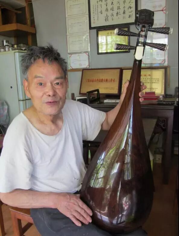 ■ 老海曙人,今年74岁,全国知名的琵琶制作大师。曾被中国民族器乐学会和北京乐器学会联合授予“中国民族乐器(琵琶)制作终身成就奖”,是迄今获此大奖的四人中唯一仍亲手制作、没有封刀的琵琶制作大师。