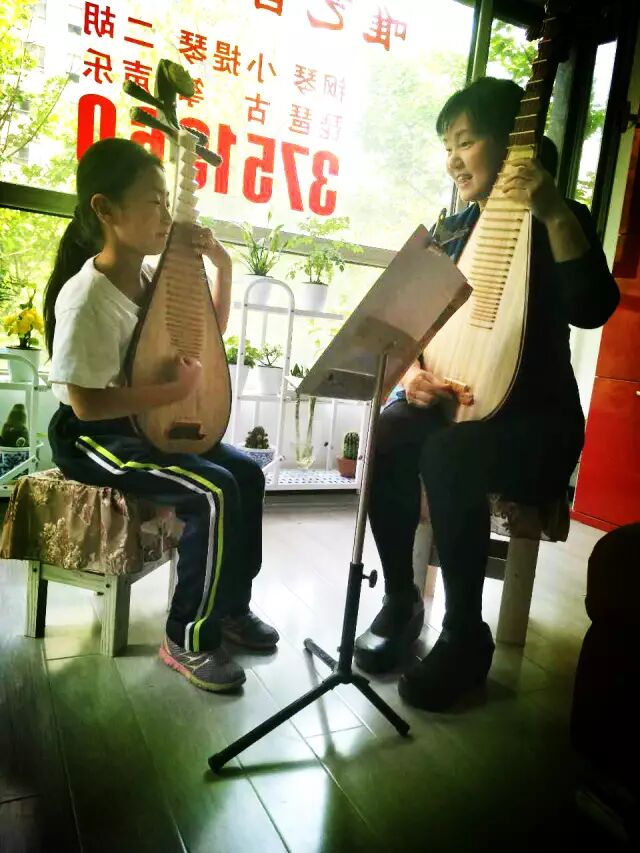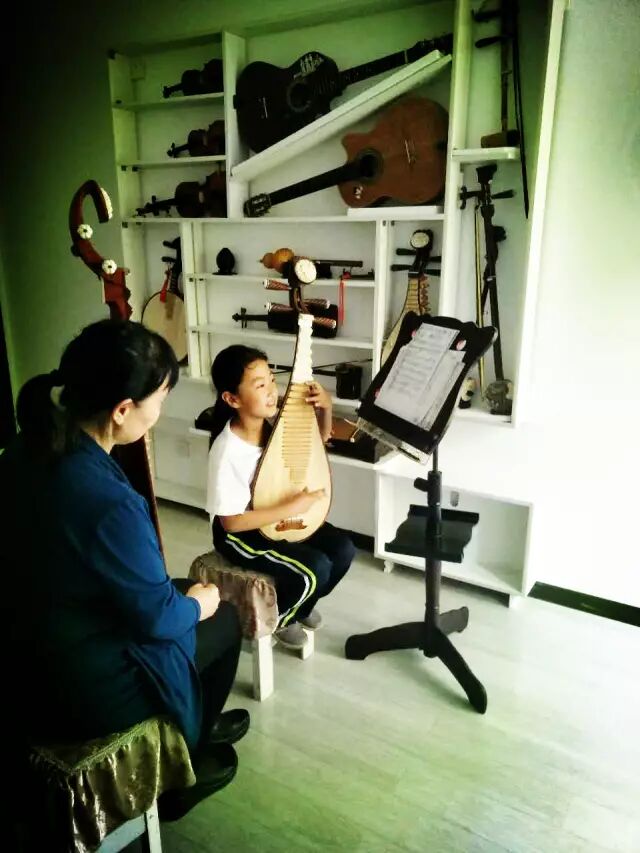 小微跟随张老师学习琵琶一年有余,已经学到考级教材的四级水平,由儿童琴过渡到成人琴了,是个高素质琴童。