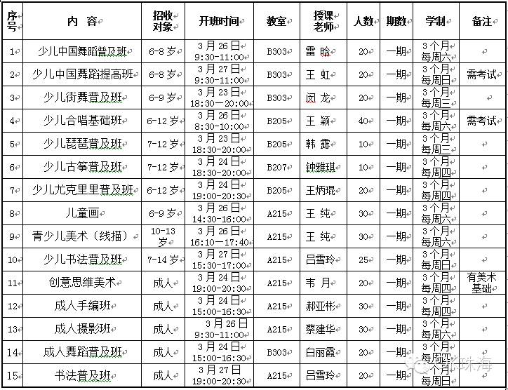 课程咨询电话: 8996000 8996080(珠海市文化馆服务窗口)