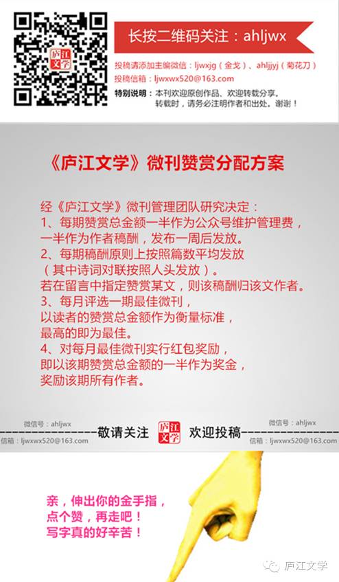 【作者简介】夏日雪,本名朱长安,安徽庐江人,男,70年代出生,从小在农村长大,在工厂当过二年工人,现在庐江某机关工作。喜欢文学,犹爱小说。