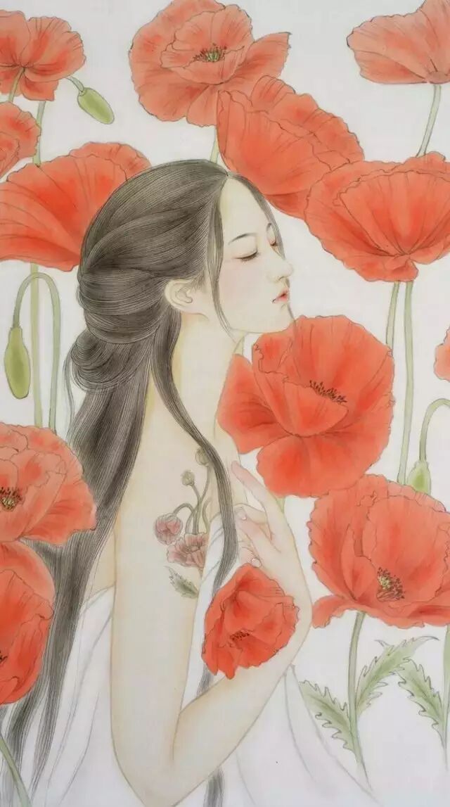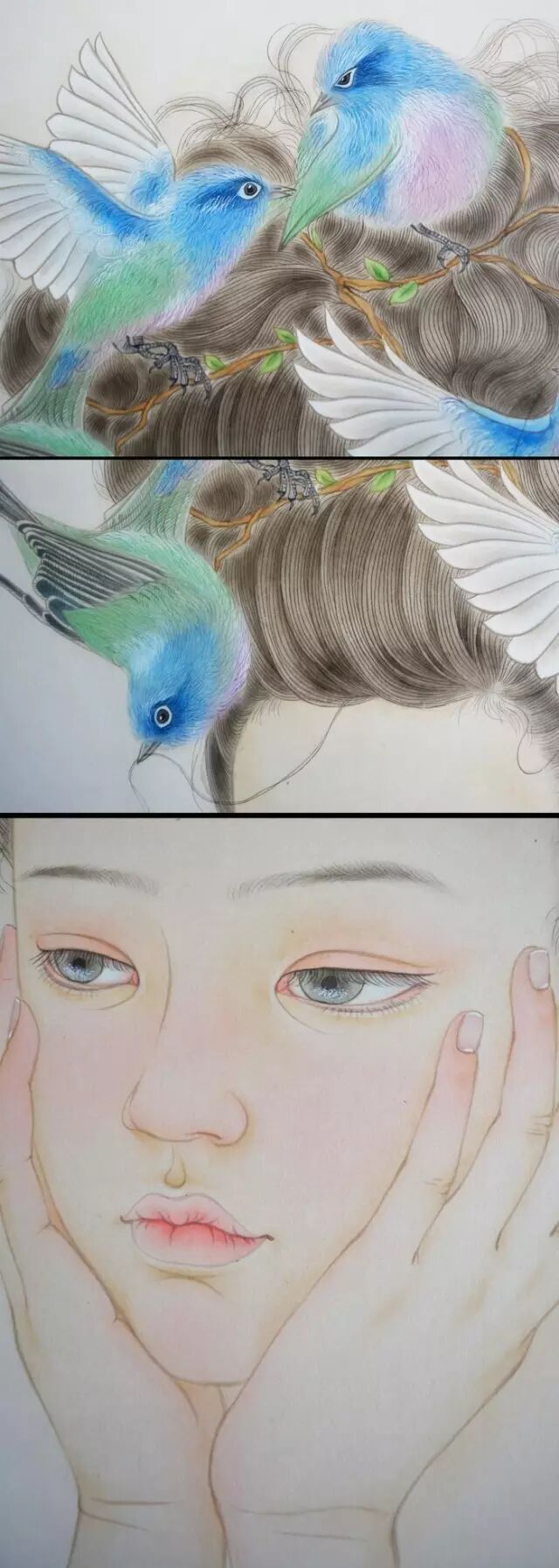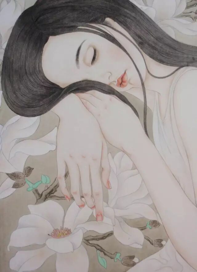 无数次失败换来的,是越来越好的心态和技艺,不慌不忙,不急不躁,在她笔下的美人,干净又明朗,明朗又哀伤。