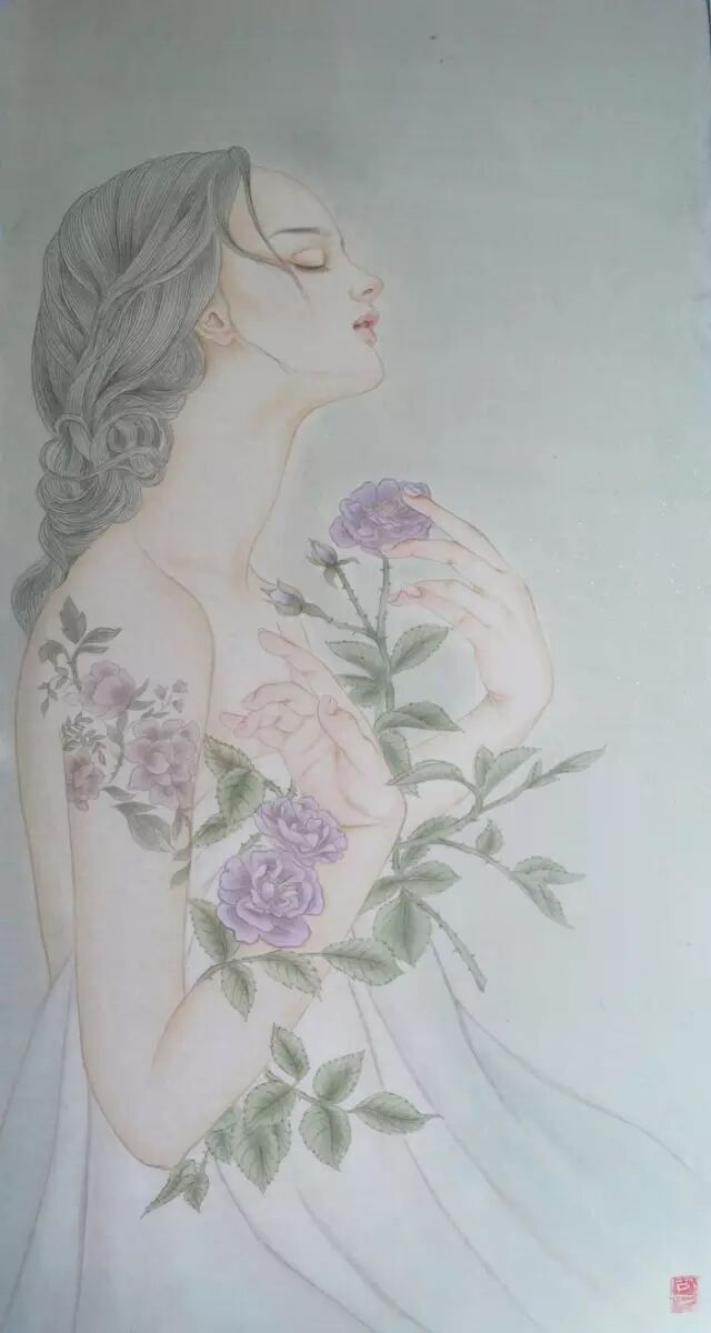 其实,在工笔画界,可可算是年轻的,说晚成,是因为她与工笔画的故事,开始的比较晚:在女儿出生后几年。
