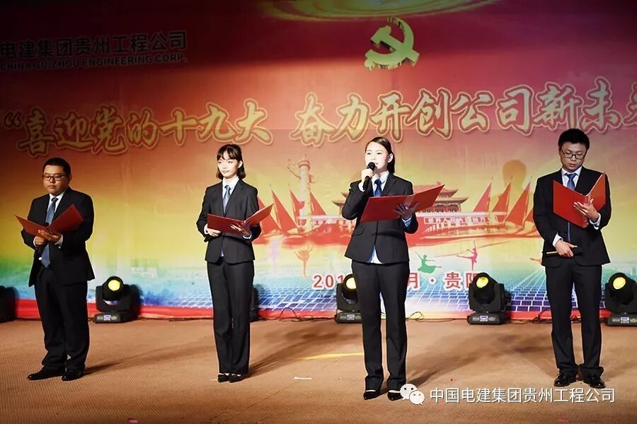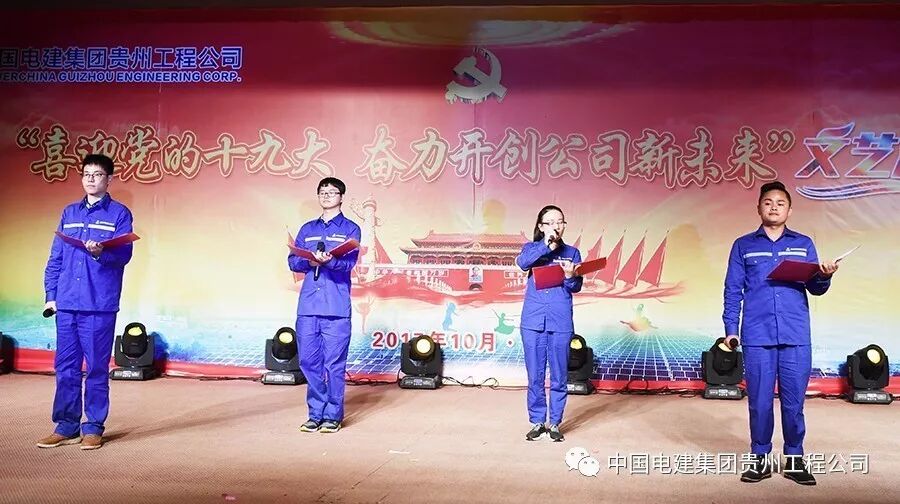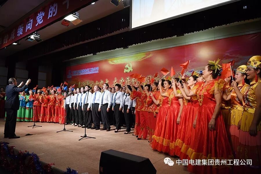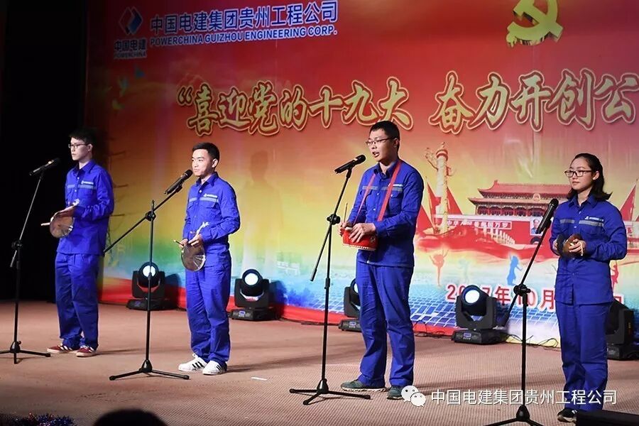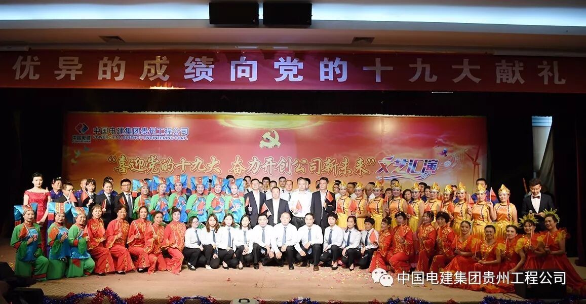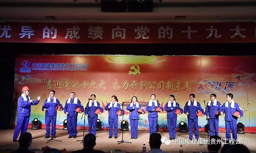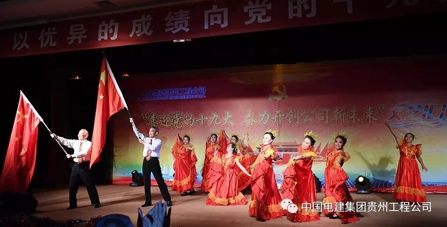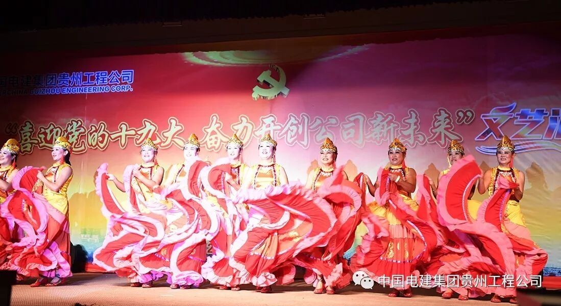 10月13日下午,中国电建集团贵州工程有限公司多功能大厅内歌舞炫彩、激情飞扬,公司“喜迎党的十九大 奋力开创公司新未来”文艺汇演在这里隆重举行。各基层党支部代表队纷纷登台表演,载歌载舞,歌颂祖国、歌唱党,庆硕果、表决心、绘愿景,为中国梦喝彩,为改革发展点赞,为劳动美放歌,喜迎党的十九大胜利召开。
