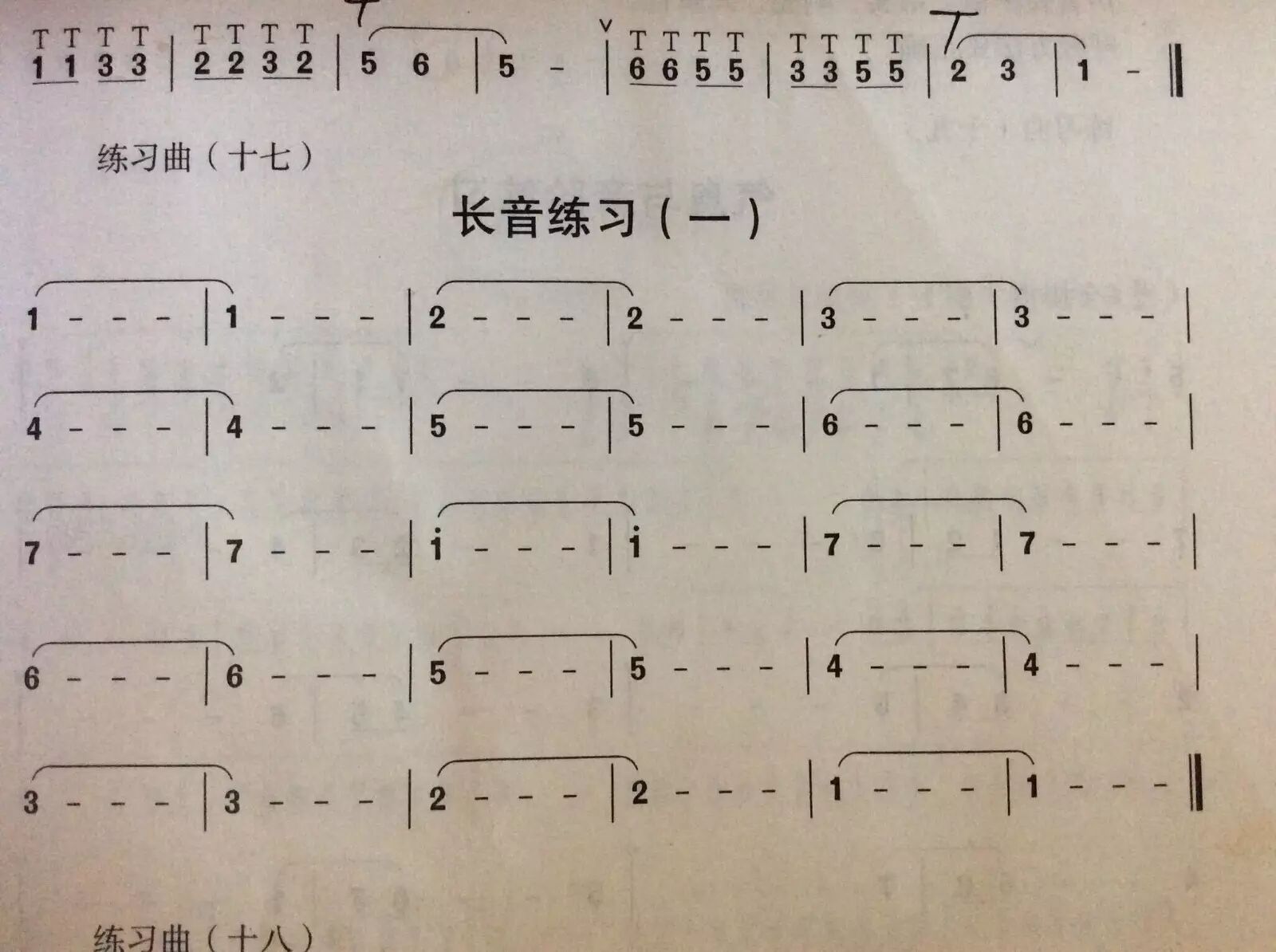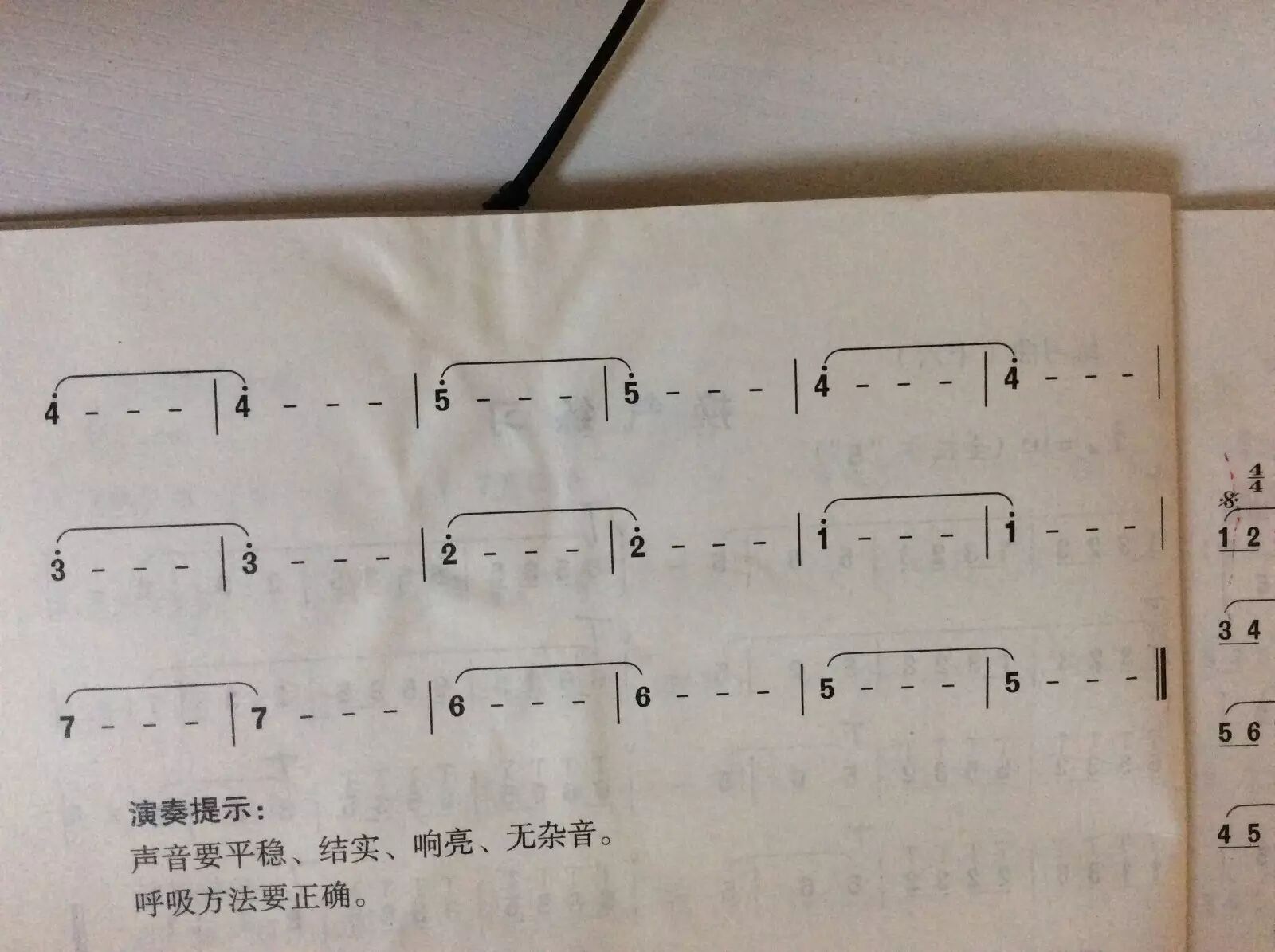 我选用安徽文艺出版社出版的《竹笛演奏快速入门》(李传兴、陈惠龙编著)里几个有针对性的练习曲来练习。