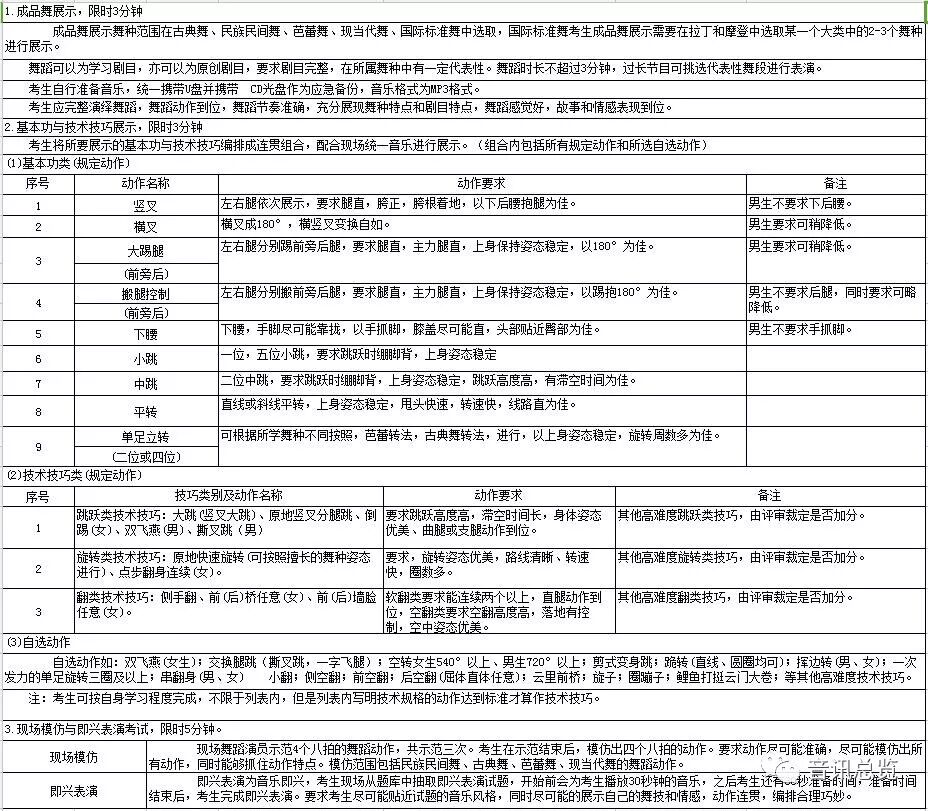 2.舞蹈考试细则