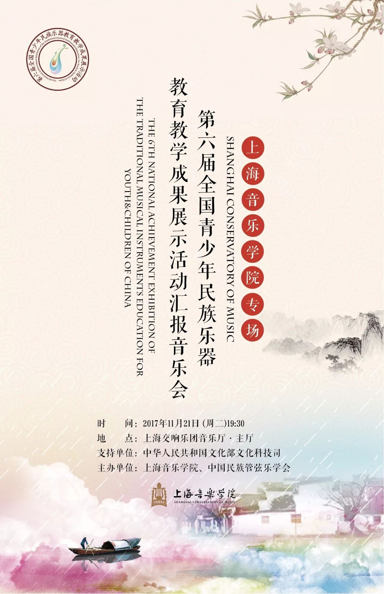 由上海音乐学院和中国民族管弦乐学会共同主办,“第六届全国青少年民族乐器教育教学成果展示活动汇报音乐会”(上海音乐学院专场)将于下周二在上海交响乐团音乐厅•主厅隆重举行。