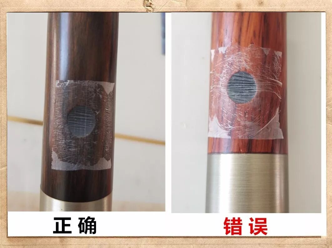 贴好笛膜以后我们要试吹一下,重点是看看低音吹出来有没有破音,高音能否吹出来,声音够不够清脆明亮、灵动甜美。