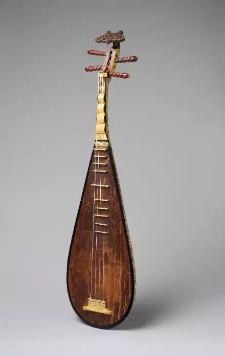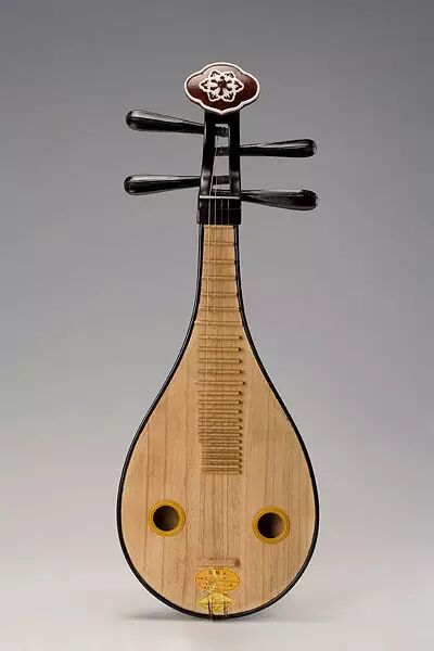 琵琶是由“头”与“身”构成。头部由“弦槽”、四只“轸子(弦轴)”、“山口”等组成。身部大致由七个部分组成: