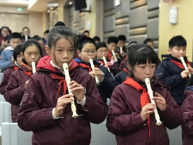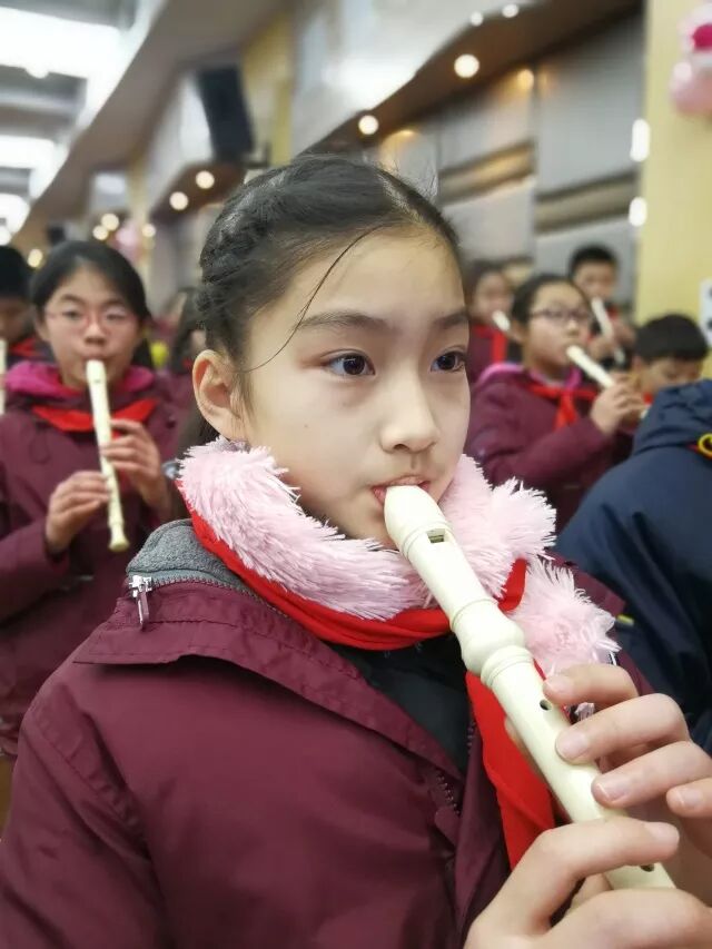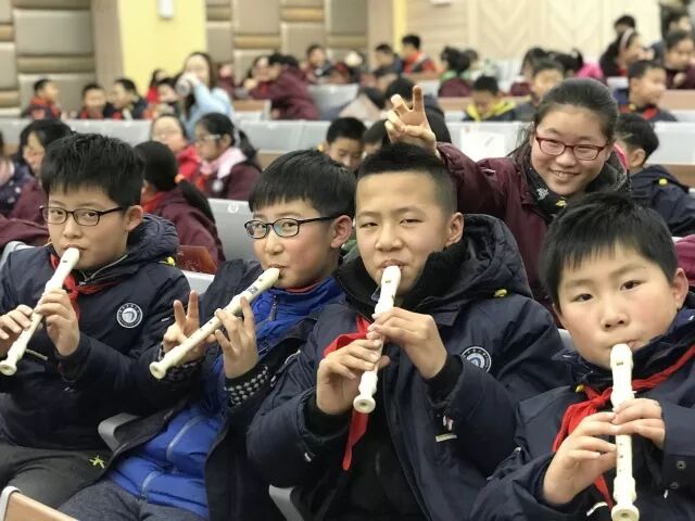 孩子们全神贯注,用笛声表达自己对音乐的独特感受,用合奏表达团队凝聚的精神力量。紧接着,欣赏了五(3)班和五(6)班带来的竖笛合奏《新春秧歌闹起来》,全场掌声阵阵,热闹非凡。之后还欣赏到了《平安夜》、《瑶族舞曲》等经典作品。