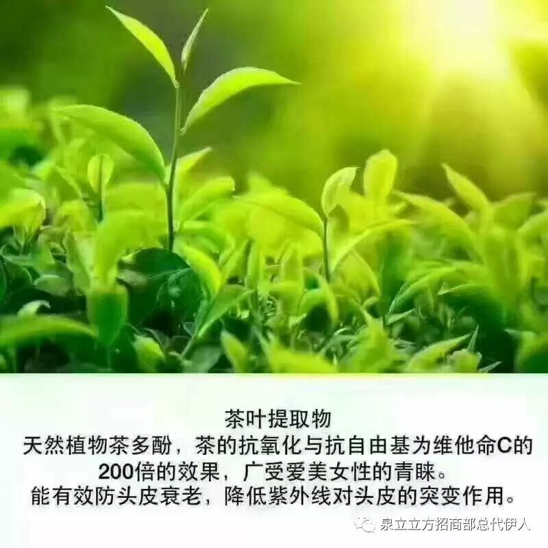 ✅茶叶提取物:抗氧化,防头皮衰老,降低紫外线对头皮的突变作用;