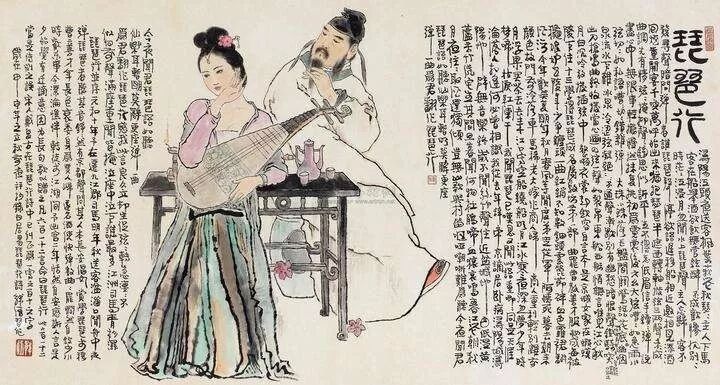 唐代社会是琵琶演奏的黄金时代,唐代文人与音乐有着不解之缘,诗歌作品中常有琵琶的出现。大诗人白居易的《琵琶行》,“千呼万唤始出来,犹抱琵琶半遮面”,句中可以看出唐代琵琶持琴方法已从横抱改为竖抱,解决了琴体过于依赖左手的问题,提高和丰富了左手的演奏技巧。