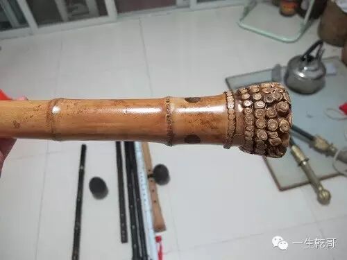 这个根节就占了五节。南箫又叫做大头萧,根节是特征之一,即便是木制南箫,也弄出来个疙瘩,当然也有南箫不具备这个根节。