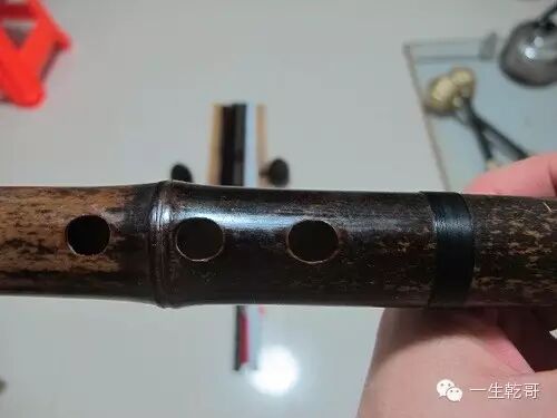五个按孔,尺八按孔正圆形,在一生乾哥的箫里边按孔是最大的。尺八的作为日本民族乐器,更适合日本音乐的演奏。一开始的尺八,是我们中国的民族乐器,应该是宫尺调,据说到了日本,又经过一系列的改良,而原本传到日本的尺八放在博物馆里。尺八与十二平均律有冲突,有些音只能从指法上找,可能尺八按孔大和这个有关系,当然这都是一生乾哥的推测。