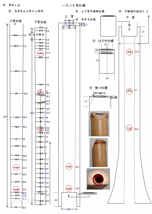 (左图为1尺8寸尺八的内径参数)
