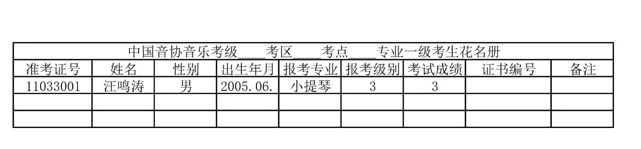 2017年中国音协六安考区考级小提琴成绩:
