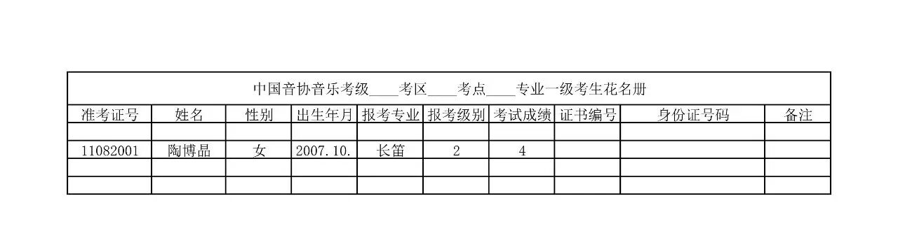 2017年中国音协六安考区考级竹笛成绩: