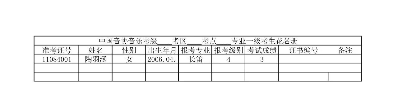 长笛成绩: